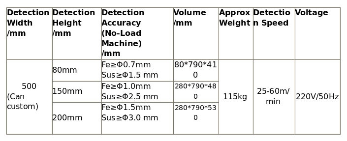 The Probe can be installed on the table and on the conveyor line to detect metal impurities in the tested object, such as gold, aluminum, copper, iron, stainless steel, etc. Suitable for a variety of food additives, such as food, meat, chemical rubber, plastic recycling industry, metal detection of medicine… ■ Test object: block products, bulk materials, etc. ■ Installed on: Conveyor line ■ Detection purpose: detect metal impurities in the tested items, such as gold, aluminum, copper, iron, stainless steel, etc. ■ Industry scope: various food additives such as food, meat, chemical rubber, plastic recycling industry, medicine, etc. Detection System: two-channel metal detection ring, rectangular caliber (inseparable) Input Current: 80/160 mA, ambient temperature: -10/60 degrees Control System: ADLINE microprocessor controller, protection class: IP65 Conveyor: High-strength mirror stainless steel structure Laser-cut, all-welded, joint PU (polyurethane) conveyor belt