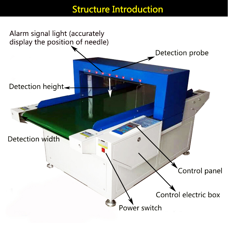 The Needle Detector is an ordinary needle detector designed with anti-jamming digital circuit and magnetic induction principle. It is mainly used to detect ferromagnetic metals such as needles and iron filings in textile products. Can effectively eliminate: electromagnetic waves such as ceiling fans, sewing machines, sealing machines.
