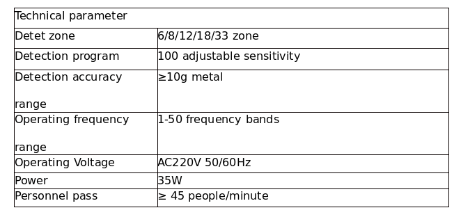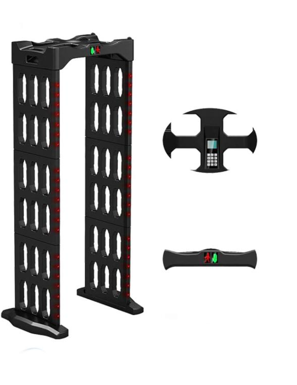 A security gate (also known as a metal detector gate) is a detection device used to check whether individuals are carrying metal objects. It is primarily used to detect concealed metal items on a person’s body, such as firearms and prohibited weapons. Security gates work on the principle of electromagnetic induction. When a person passes through the gate, the sensors inside detect changes in the electromagnetic field caused by metal objects, triggering an alarm and indicating the location of the metal object. It can quickly and effectively detect all kinds of precious metals such as copper, tin, zinc and other precious metals that are hidden in the human body through the control dao,Radiation is implemented in accordance with EN50081-1 standard.